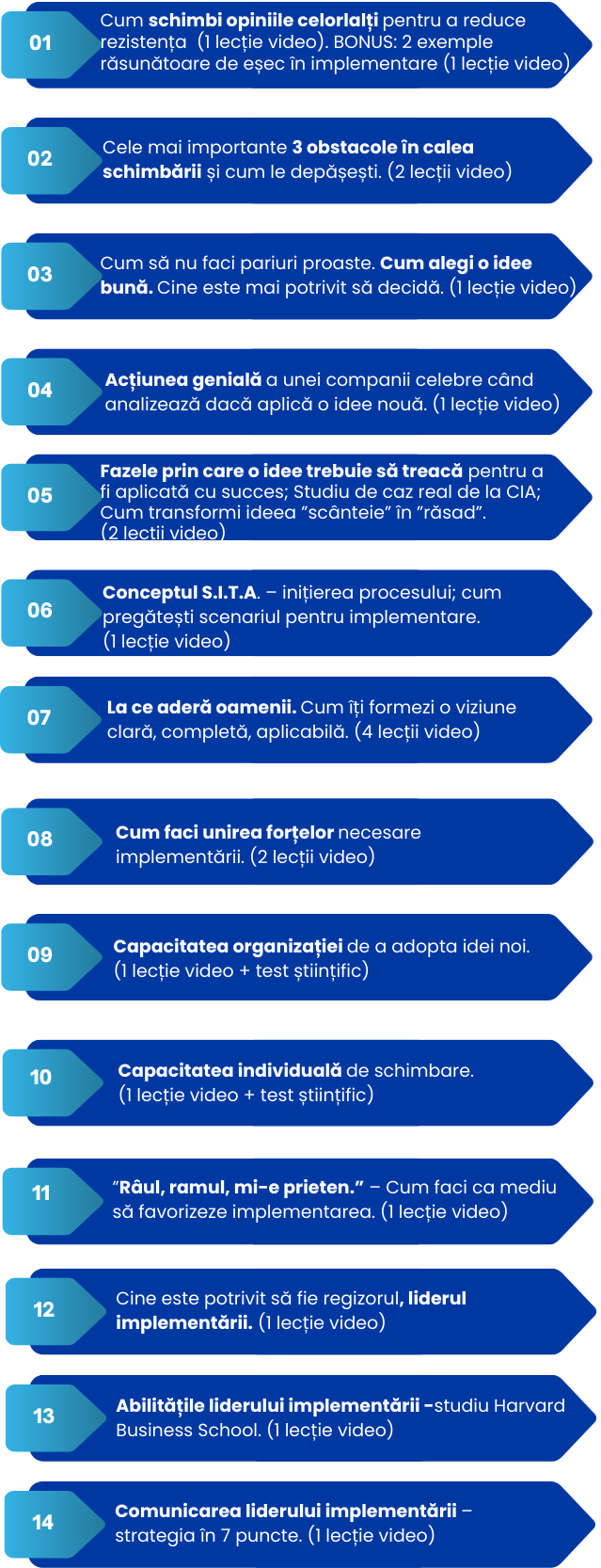 Aici vezi conținutul cursului: ”CUM IMPLEMENTEZI CU SUCCES IDEI NOI”